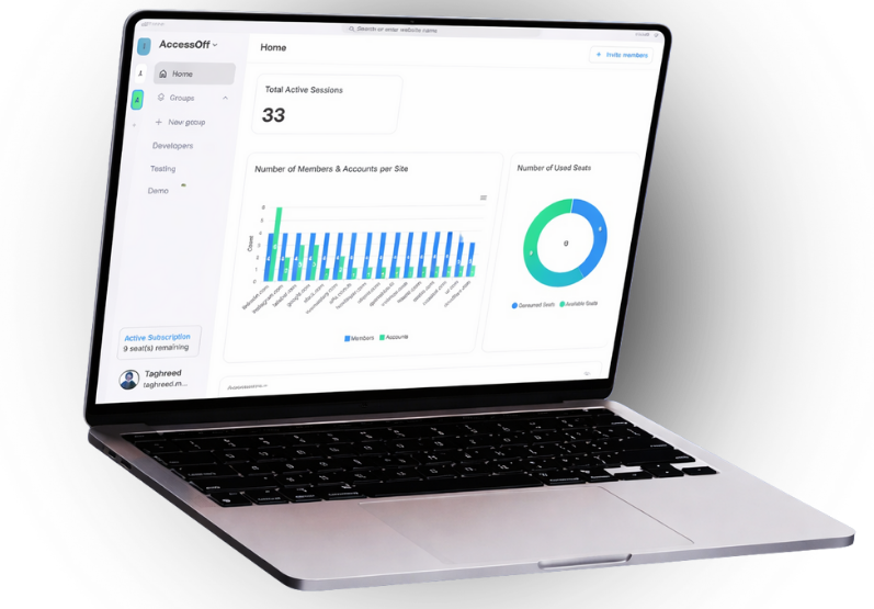 Both parties should download AccessOff (the one granting access and the one receiving the access). After signing up and login to AccessOff, the admin should login to the account they want to share, they customize accessibility and they invite the second party to this account (You can imagine it as Slack user experience – workspaces, channels and invitations to these channels).