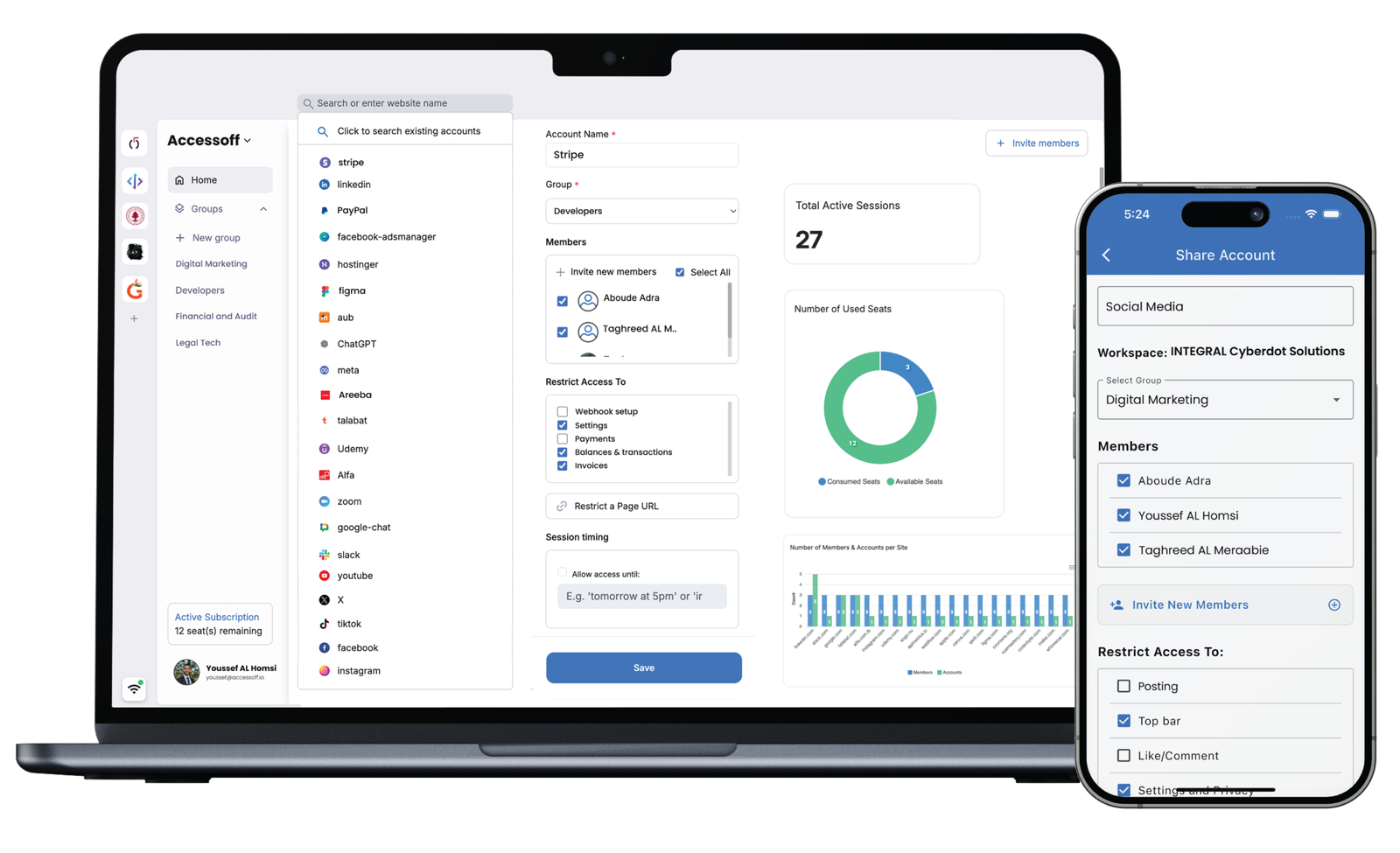 AccessOff grants full control and customized access to any online account, ex: you can share your personal LinkedIn account password-free and with full accessibility customization.